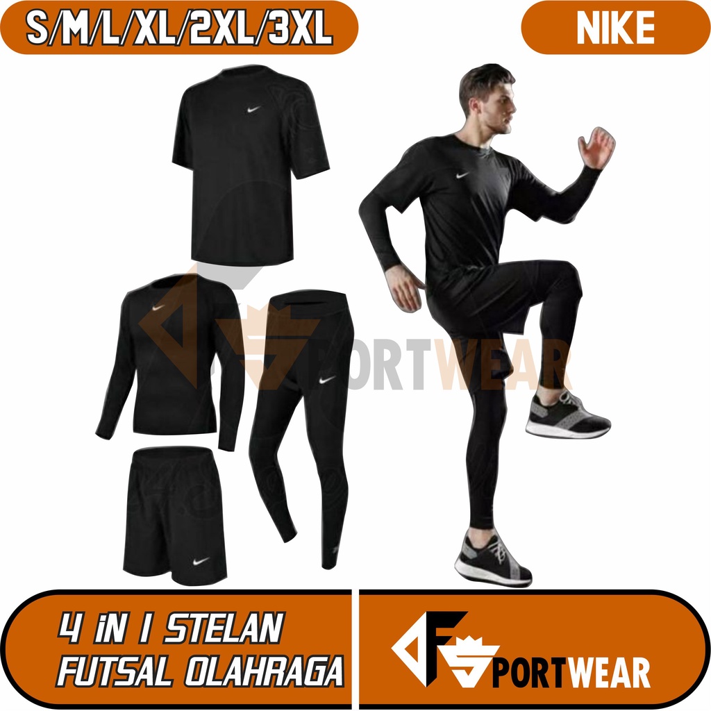 Kelebihan - Kelebihan membeli [ 4 in 1] Full Set Stelan Olahraga Pria Premium Manset Baju Futsal Running NlKE {HITAM} Size S-3XL di Toko ini