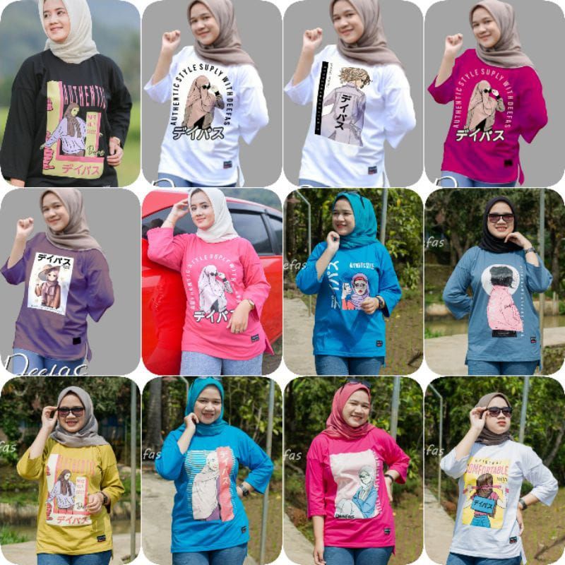 BAJU OVERSIZE WANITA LENGAN 7/8 BAHAN KATUN / COTTON KOMBET 20S BRAND DEEFAS BAJU WANITA MUSLIM OLAHRAGA SENAM KAOS CEWE TANGAN 7/8 MOTIP BAHAN KATUN KOMBET 20S