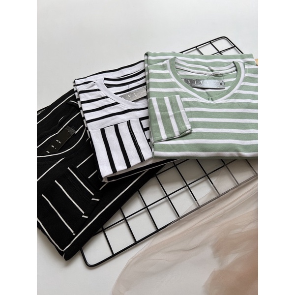 READYBASIC - BAJU KAOS WANITA LENGAN PANJANG BAHAN RIBB HALUS STRIPE TEE BLACK