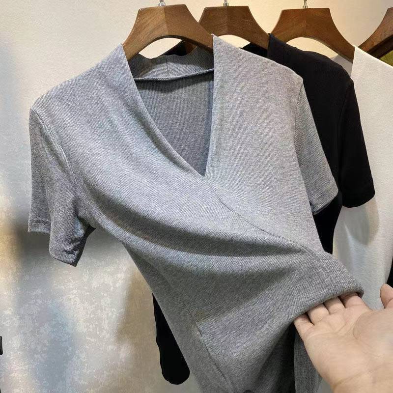 Kekurangan - Kekurangan membeli T shirt / Atasan wanita / baju kaos V neck slim fit kualitas bagus T1 (1896) di Toko ini