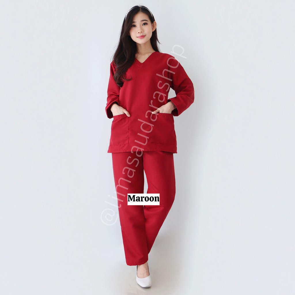 Kelebihan - Kelebihan membeli READY! BAJU JAGA LENGAN PANJANG UNISEX (BAJU OKA/ OK/ BAJU SCRUB MEDIS) 1 SET BAJU DAN CELANA di Toko ini