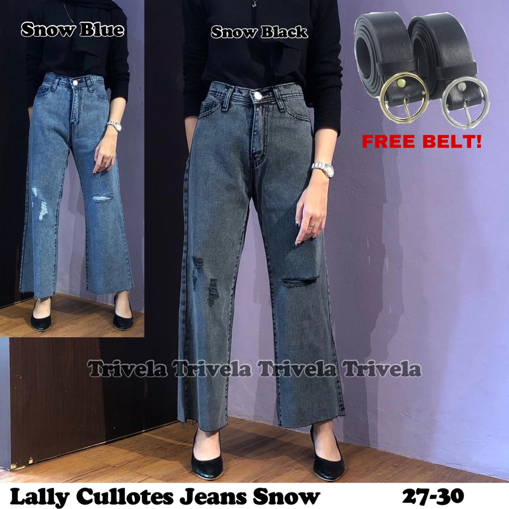 Kelebihan - Kelebihan membeli (FREEBELT) - Lally Cullote Jeans Snow / Celana Jeans Kulot Unfinished Wanita di Toko ini