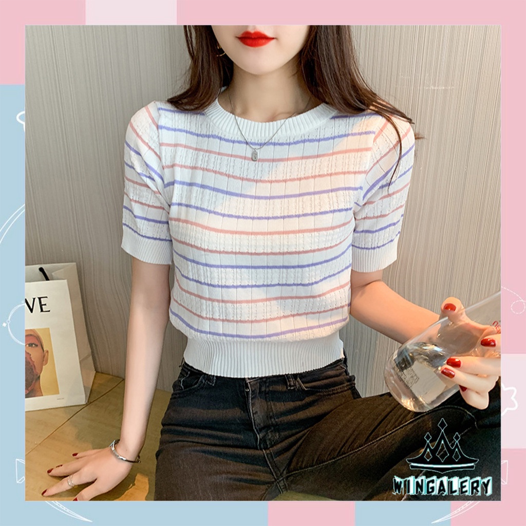 Kelebihan - Kelebihan membeli ✨WINGALERY✨ Baju Rajut Wanita model Kaos Import Lengan Pendek 4049 di Toko ini